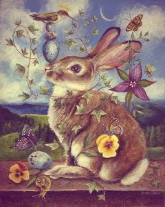 Всъщност заекът е символ на много лунни богове. Той олицетворява цикличната природа на луната и на самия живот, а също така символизира интуицията, връзката между боговете и човека и дори възкресението след смъртта. Освен това зайците са известни със своята плодовитост, която се съчетава добре със земеделието, плодородието, благосъстоянието и раждането на нов живот.